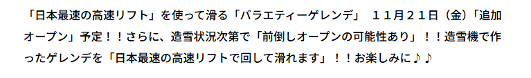 これにつられて有給休暇とって初滑り行ってきました。
