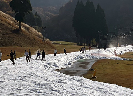 幅も狭く人工雪という事もあり情けないかな上手く滑れない🥲